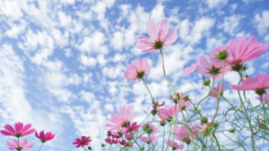 10月になれば、咲いたコスモスと山の緑と青い空のコントラストが見事ですよ。